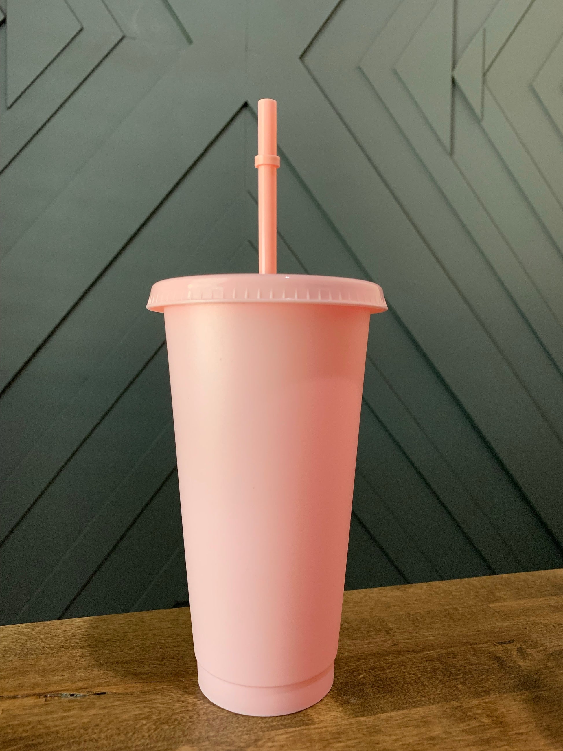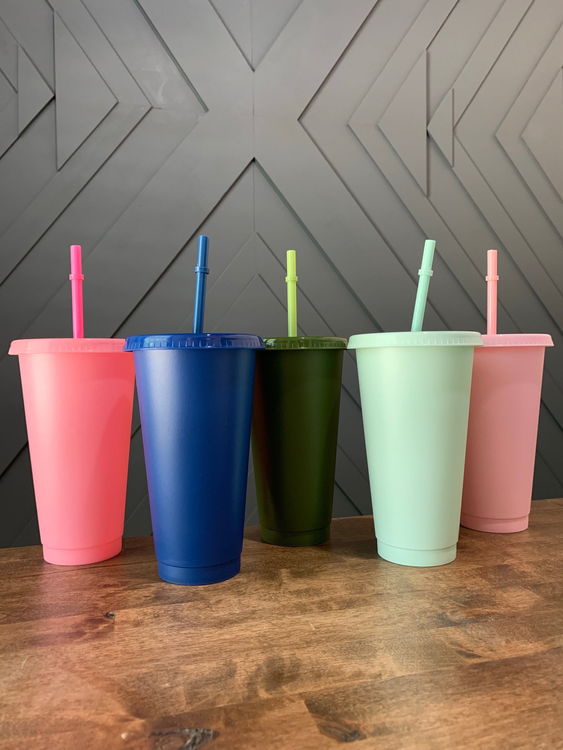 Sold in both a mixed color set and individually. Each cup comes as pictured with a lid, straw and cup. All cups are unmarked for your complete and total creative control.