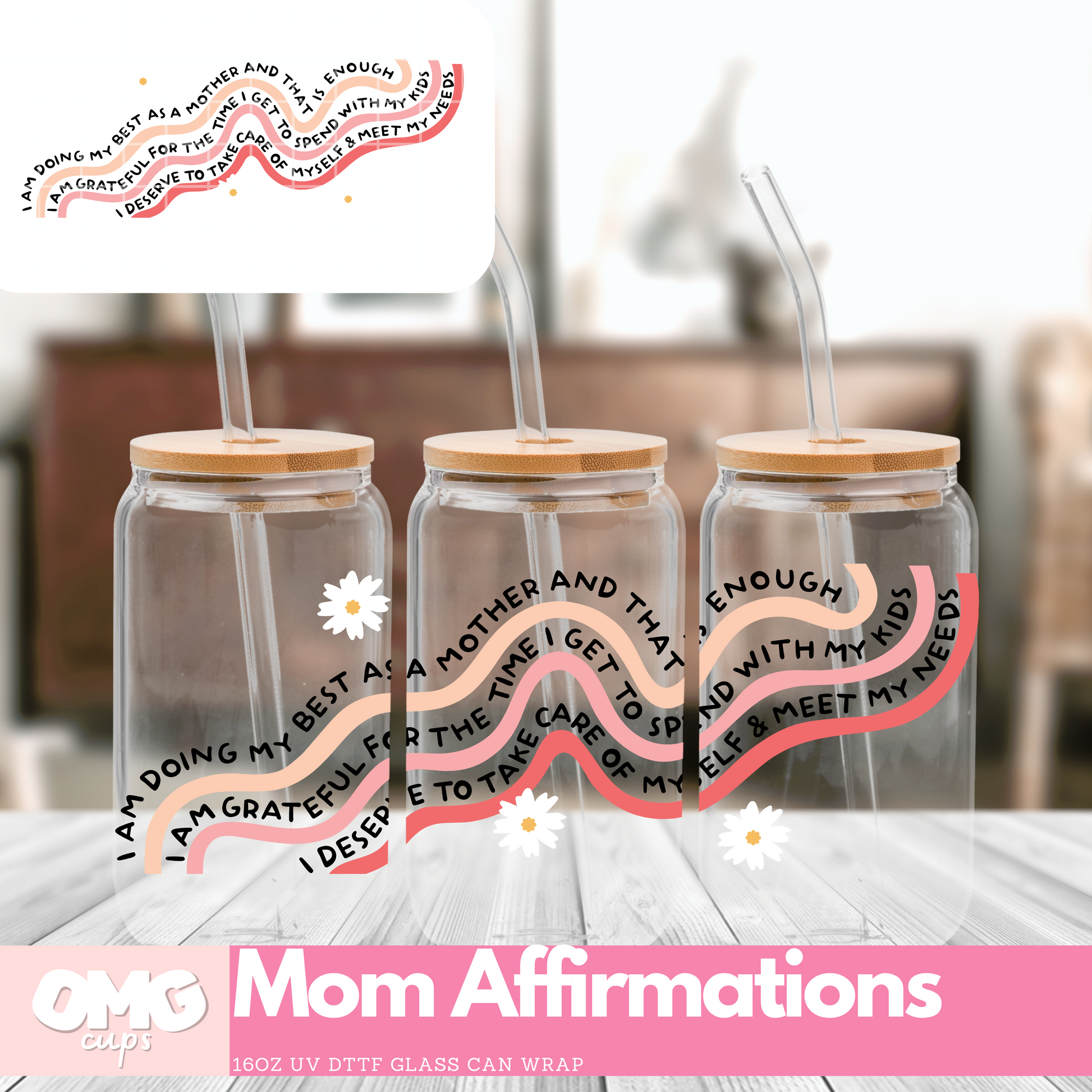 Mom Affirmations | 16oz UV Glass Can Wrap (Wrap Only - No Glass Can Included)